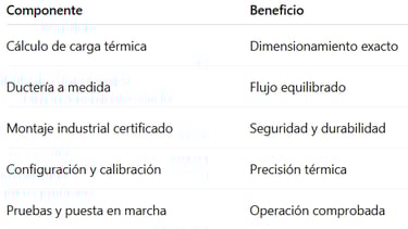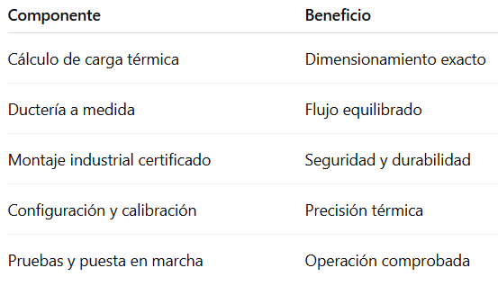 Instalamos equipos VRF, Chillers, Manejadoras de Aire (AHU), Fan & Coil Units, sistemas de extracción, ventilación, y ductería personalizada según las necesidades reales del edificio — no por catálogo, sino por ingeniería térmica aplicada.
